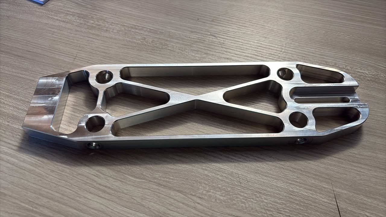CNC machined for ultimate performance. This structural component features an intricate X-pattern design that delivers